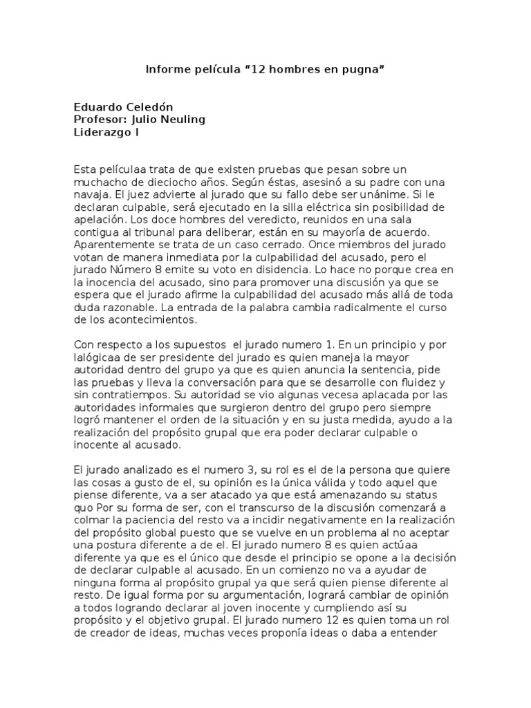 Trabajo Analisis De Pelicula 12 Hombres En Pugna Informes Maxii Maureira