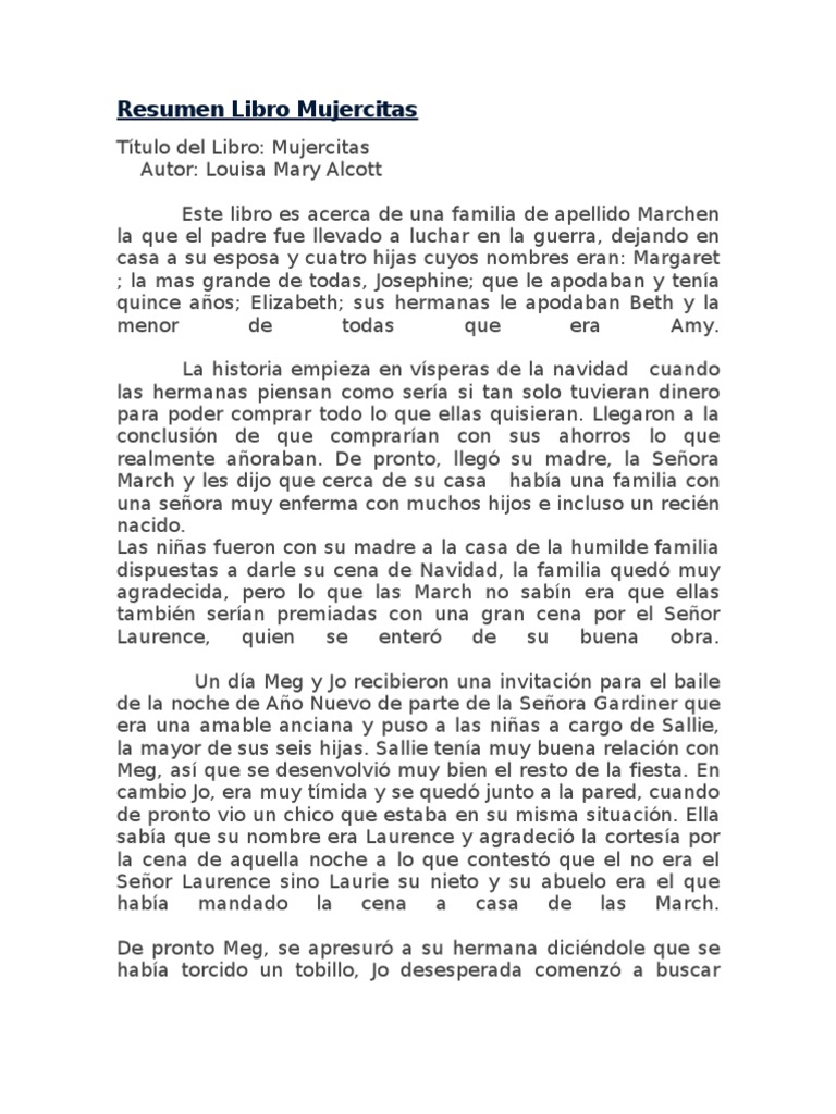 Doc Resumen Del Libro Mujercitas Kika Manitcia Academia Edu